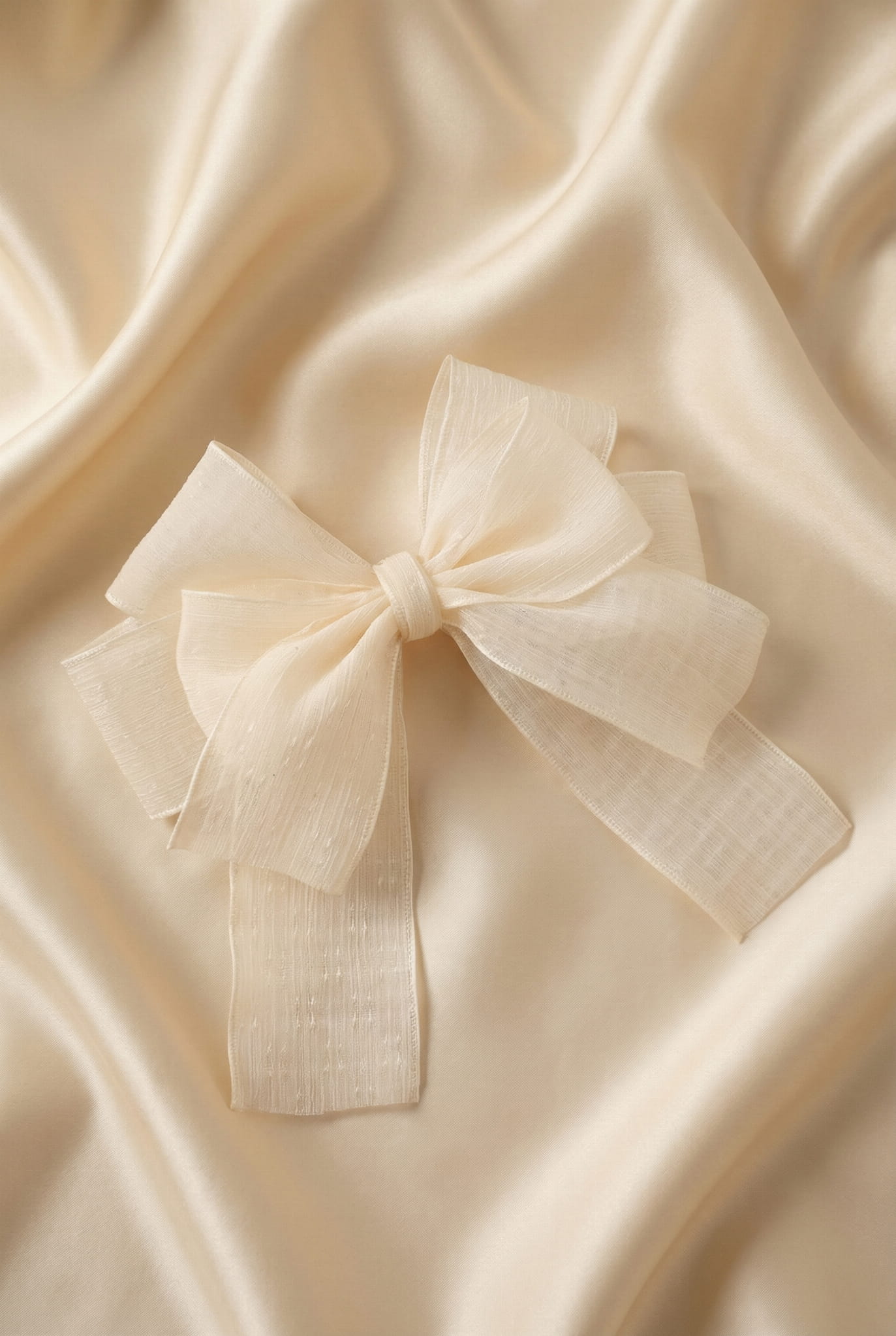 Elegantná mašľa do vlasov pre dievčatko – krémová, s jemným leskom